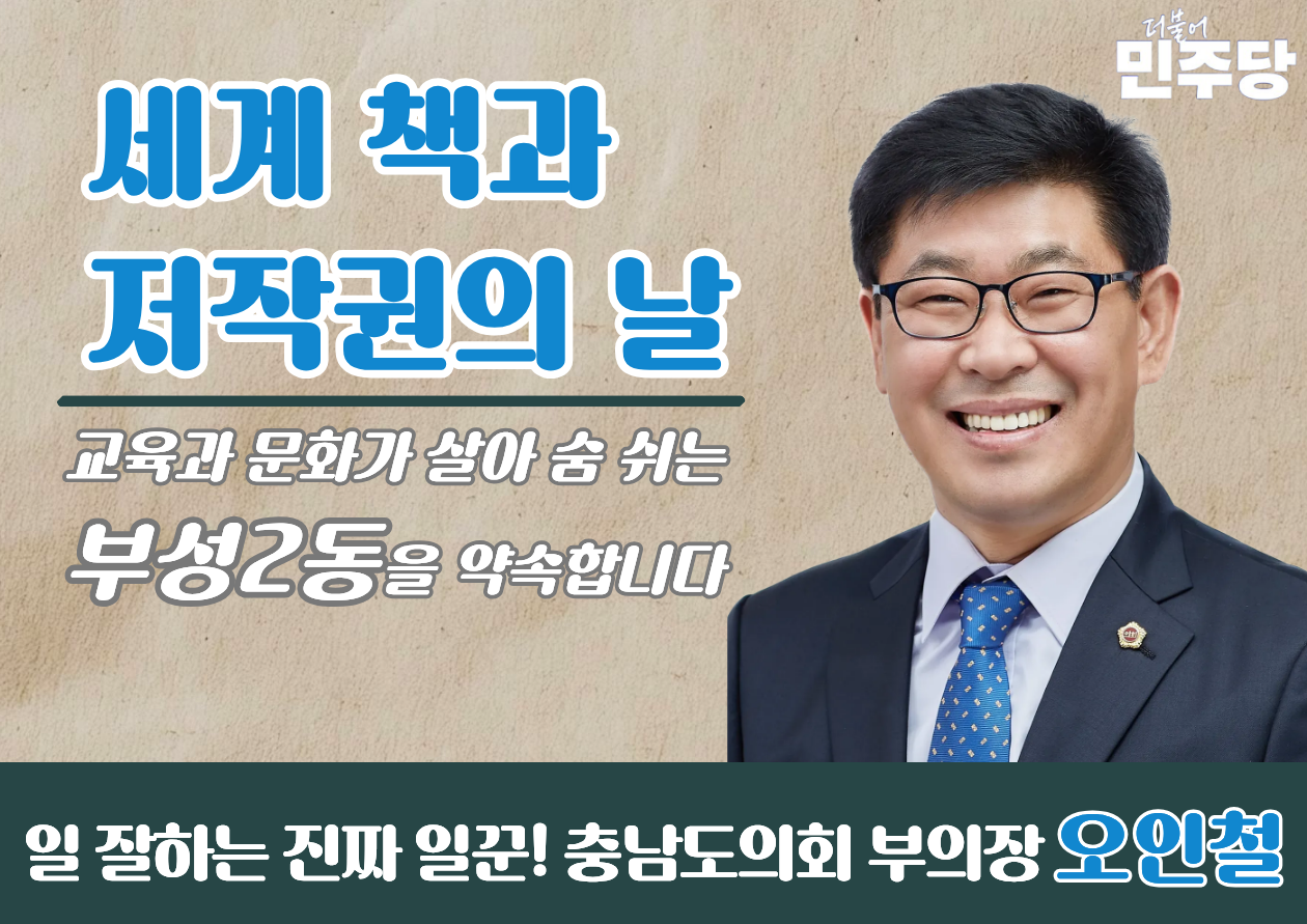 제가 꿈꾸는 우리 부성2동(두정·성성·차암)은 '아이 키우기 가장 행복한 동네'입니다. 그 바탕은 우리 아이들이 집 앞 어디서나 책을 가까이하며 지혜를 쌓을 수 있는 환경을 만드는 것이라 믿습니다.