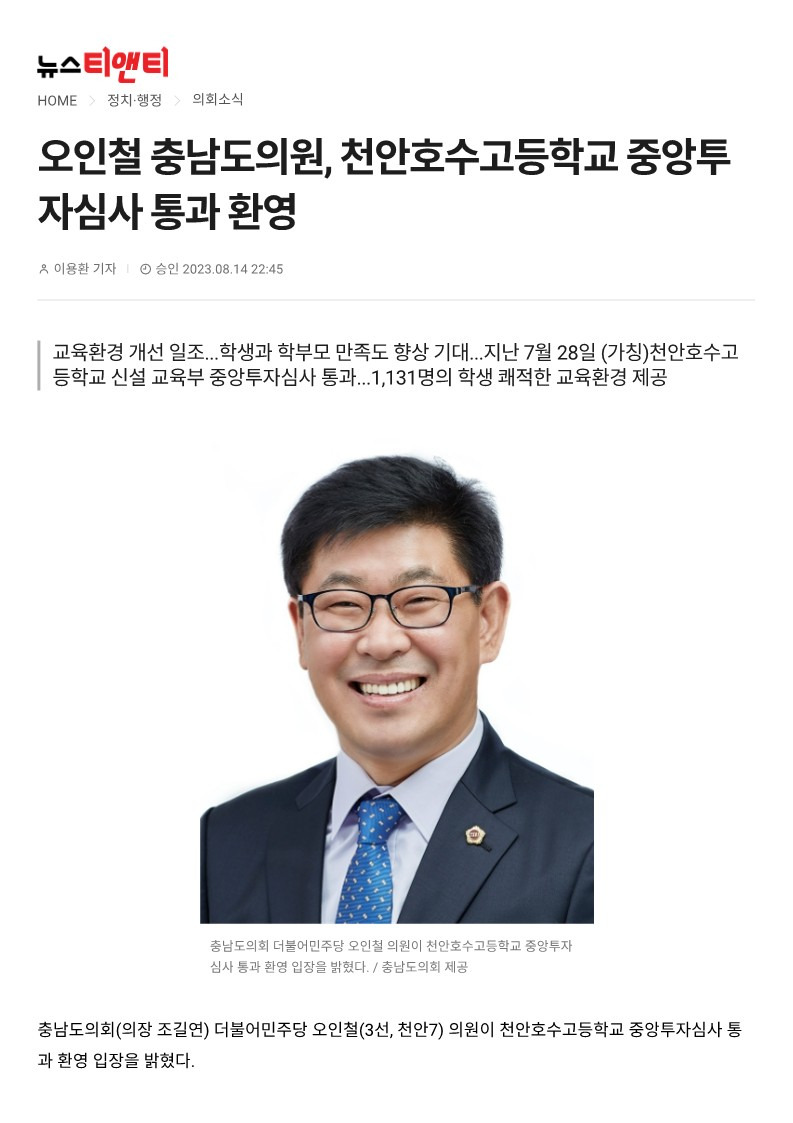 #오인철 #충남도의회 #부성2동 #천안사람 #진짜일꾼 #일잘하는의원 #천안시 #의정보고 #언론보도 #무상교육